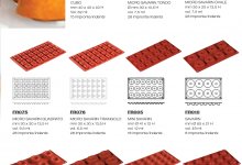 Stampi formaflex in silicone, caratterizzati da forme creative e piacevoli per realizzare monoporzioni e mignon dolci o salate. Formato unico 175x300 mm, pari ad un terzo di Gastronorm e un quarto delle teglie da pasticceria (600x400 mm), per garantire perfetta compatibilità con le attrezzature professionali. Resistono da -40° a +280°.